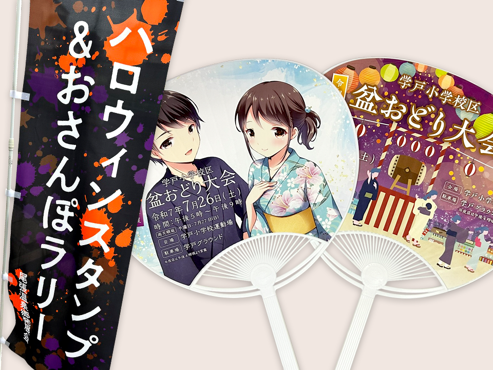 イベントやキャンペーンの効果を高めるには、視覚的なインパクトが重要です。当社では、幟(のぼり)や団扇など、様々な販促ツールのデザインから制作までをトータルでサポートしています。現場の雰囲気に合わせたデザイン提案により、ブランディング効果を高め、来場者の目を引く仕掛けをつくります。用途やターゲットに合わせた柔軟な対応が可能です。